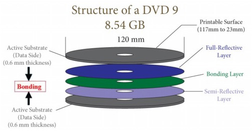 DVD-9: One side, with dual layers of recording (8.5GB)